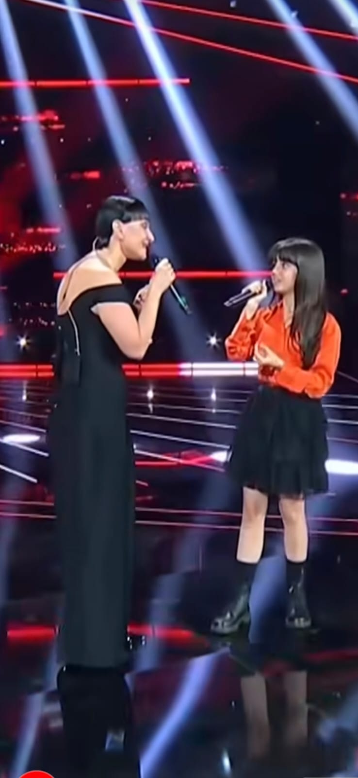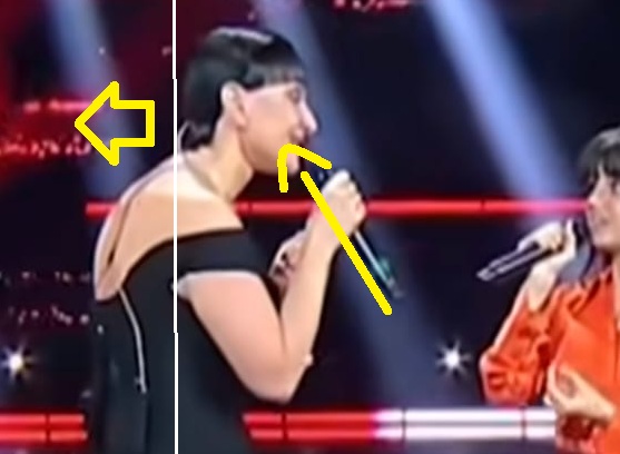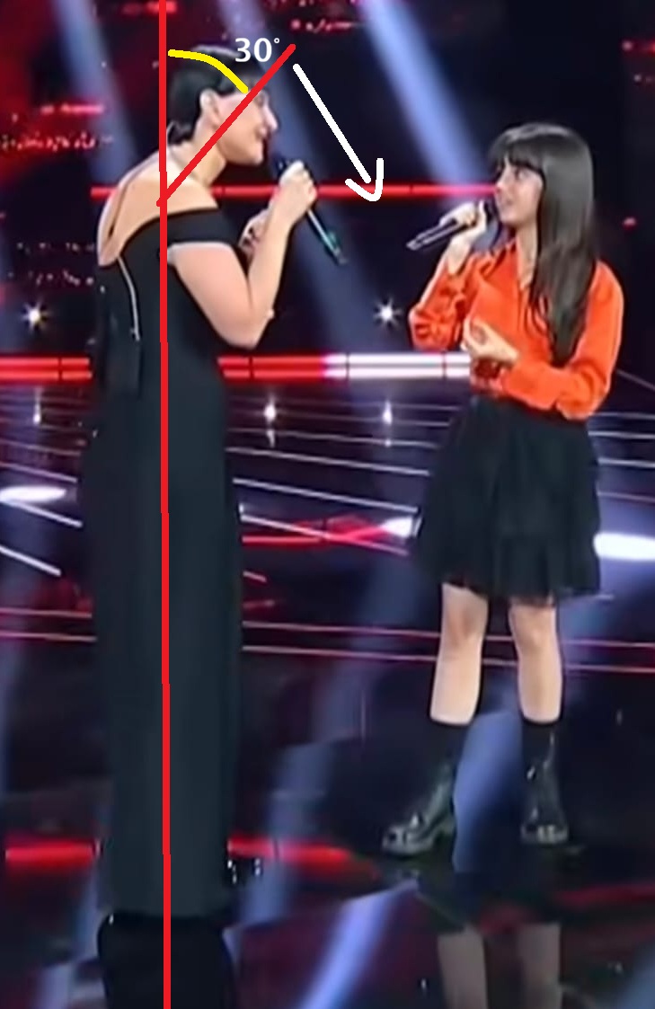 La famosa cantante si inclina leggermente per avvicinarsi alla bambina ma il suo rapporto testa-collo-busto non è fisiologico.